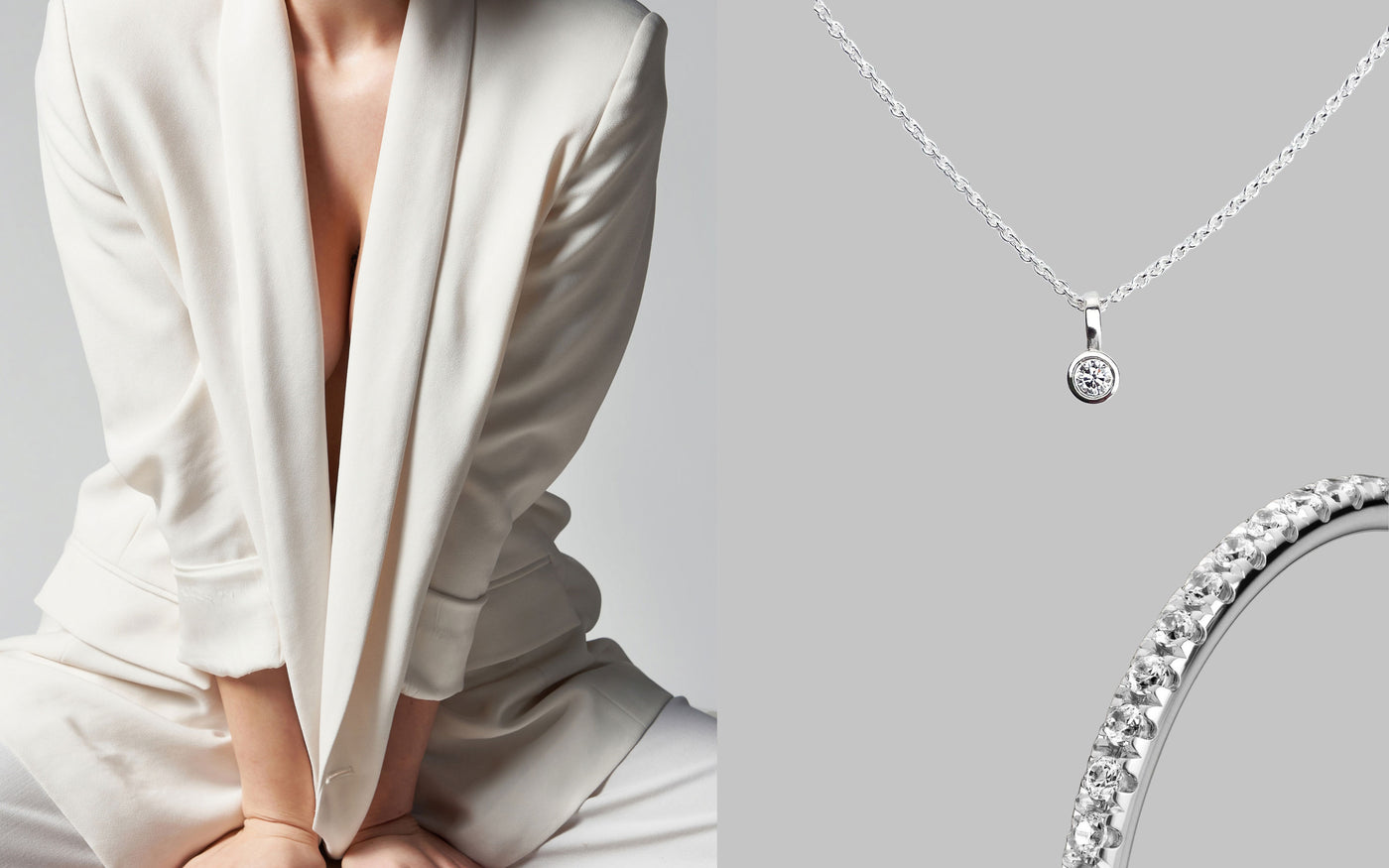 Vi arbetar uteslutande med hållbara och naturliga material – 925 sterling silver, 18k återvunnet guld och etiskt framtagna diamanter.