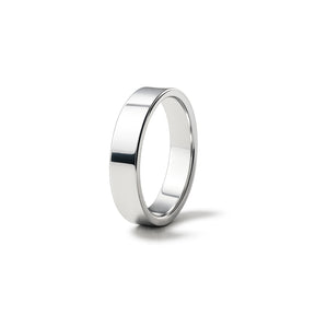 The ring is a Sterling silver ring with a polished surface and straight edges. Made of solid silver.