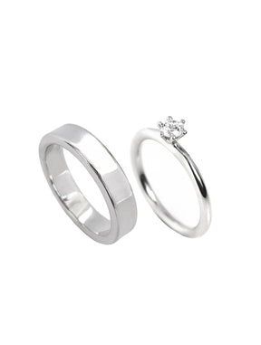 Wedding / Engagement Rings Couple | Julie 0.25 ct + Plain silver ring