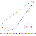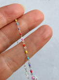 Tunna silverkedjor med färgglada pärlor.